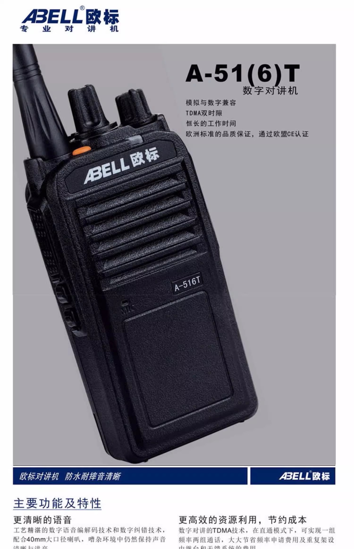 A516T數(shù)字對講機(jī)器大功率戶外餐飲保安手臺(tái)10公里